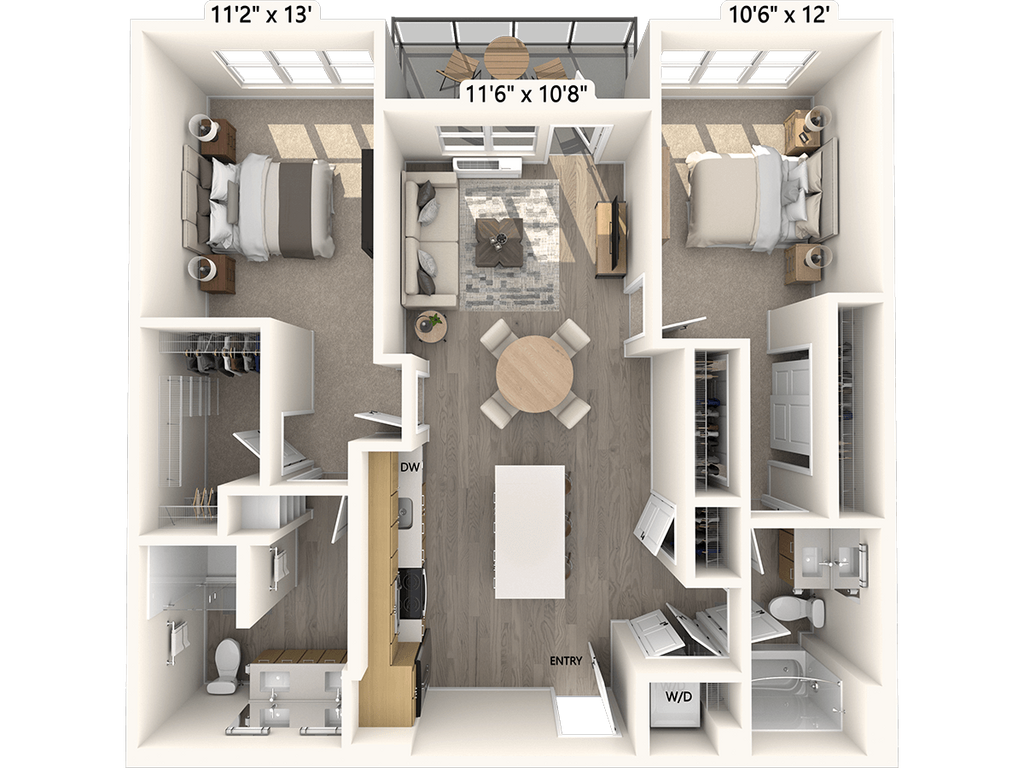 2 Beds, 2 Baths, 1027 sq ftAvailable NowModel Gallery
