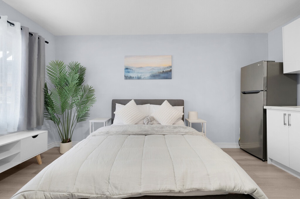 **13th month free on a 12 month lease!!** Discover our newly renovated bachelor units starting at just $1100! Located at 8004 Lundy's Lane Niagara Falls, we offer a prime location within walking distance to FreshCo, Starbucks and other major points of interest. Enjoy a vibrant community with diverse dining options, entertainment like a bowling alley, and convenient bus routes—all just a 5-minute walk away. Educational institutions such as Brock University and Niagara College are only a 15-minute drive away and easily accessible by public transit. Each unit features the following comforts: Brand new stainless steel appliances Quartz countertops High-gloss kitchen cabinets Durable vinyl flooring Stylish ceramic-tiled showers Additional amenities include: On-site laundry facilities 24/7 management support A renovated courtyard for outdoor leisure Furnished units are available for just a $50 monthly fee! All applicants will undergo a full reference and credit check. Interested? Message us for a viewing!