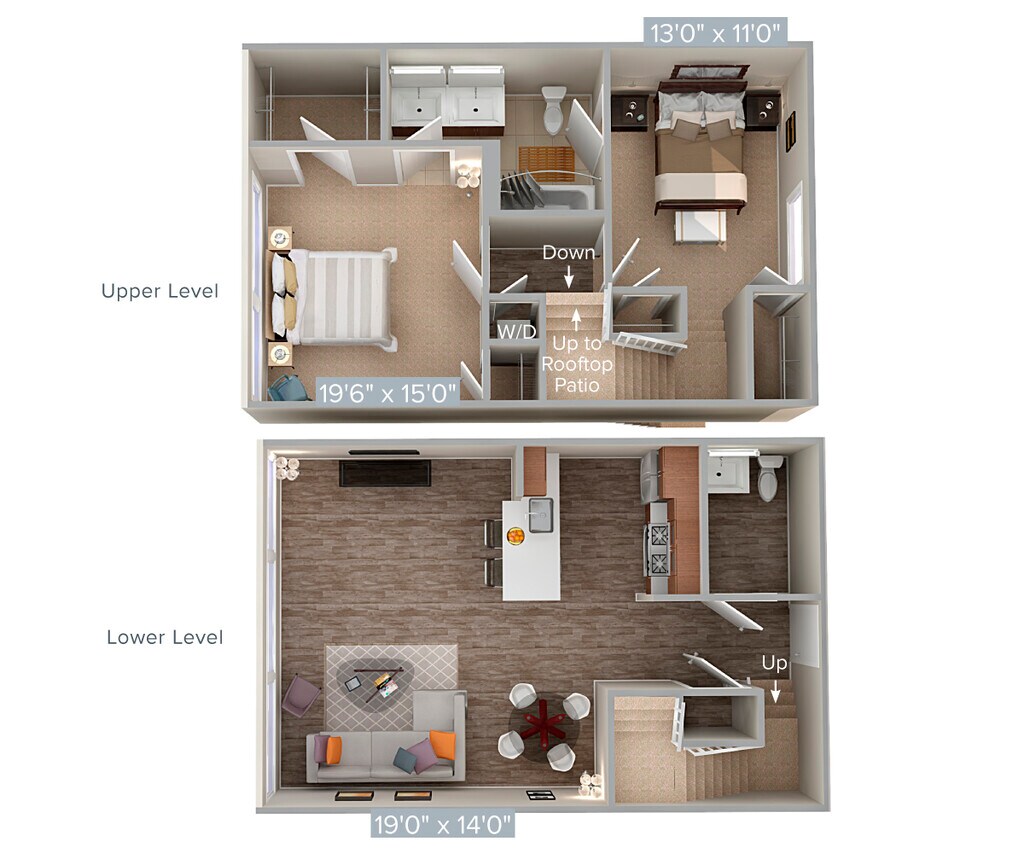2 Beds, 1.5 Baths, 1209 sq ftAvailable Mar 29Largest 2 BedroomThis is the largest 2 Bedroom at this PropertyModel Gallery