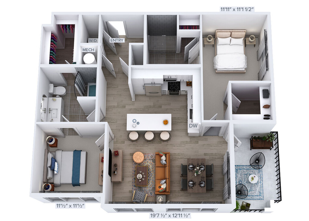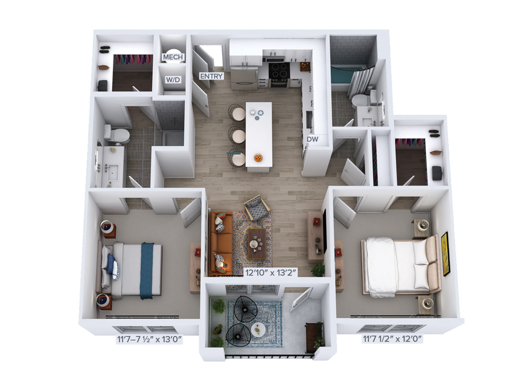 2 Beds, 2.5 Baths, 1704 sq ftAvailable NowLargest 2 BedroomThis is the largest 2 Bedroom at this PropertyModel Gallery