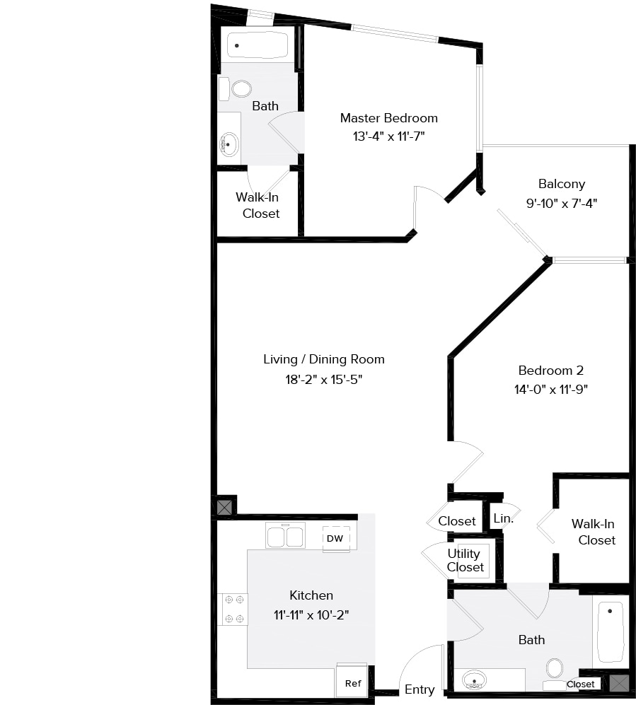 1 Bed, 1 Bath, 1525 sq ftAvailable NowLargest 1 BedroomThis is the largest 1 Bedroom at this PropertyModel Gallery