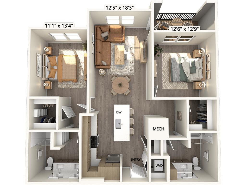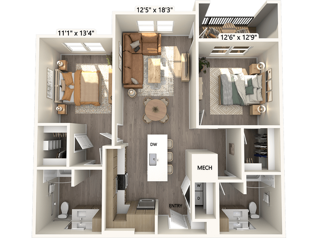1 Bed, 1 Bath, 693-705 sq ftAvailable NowModel Gallery