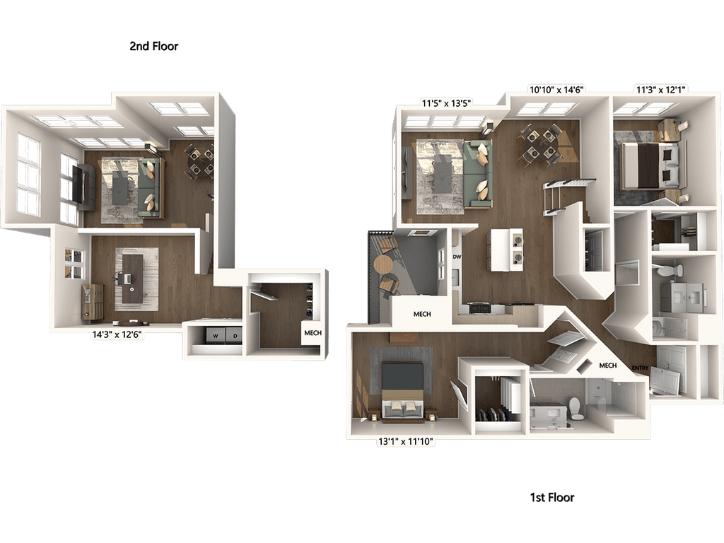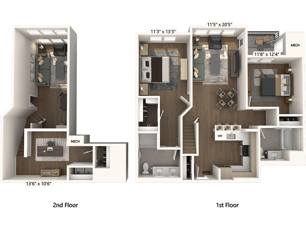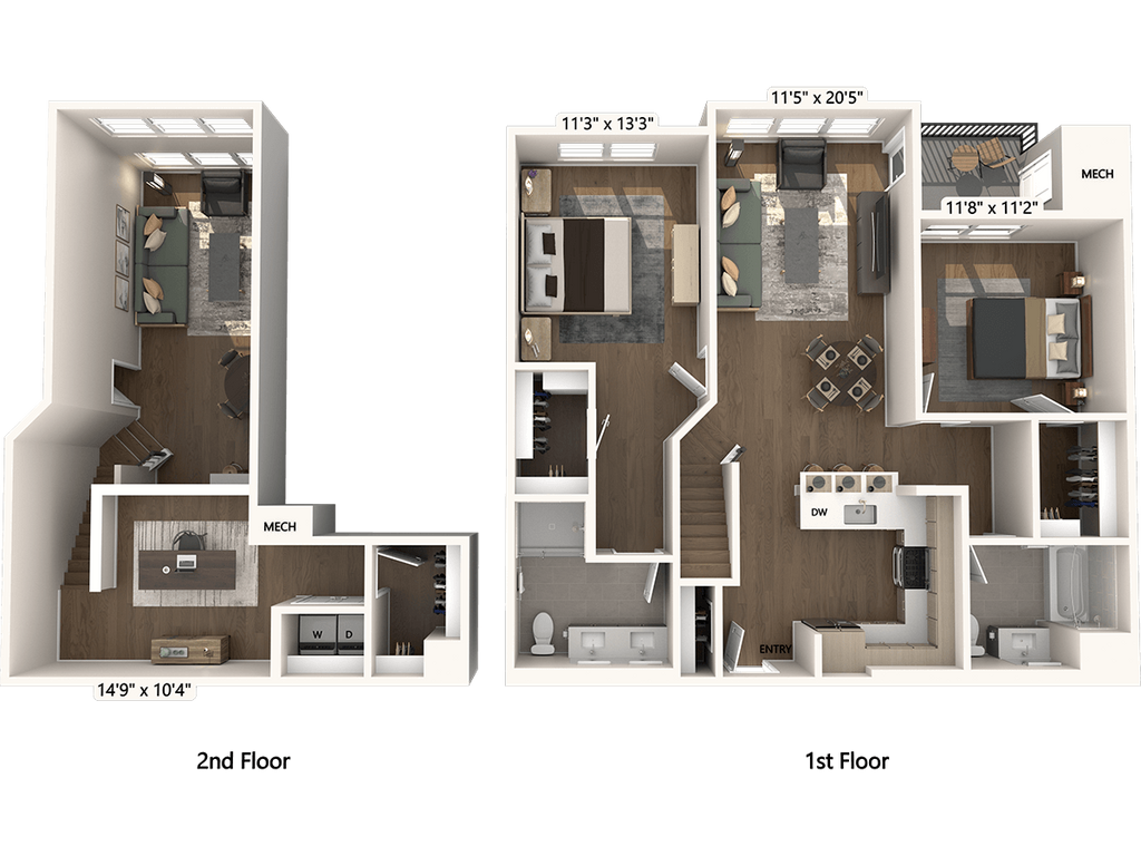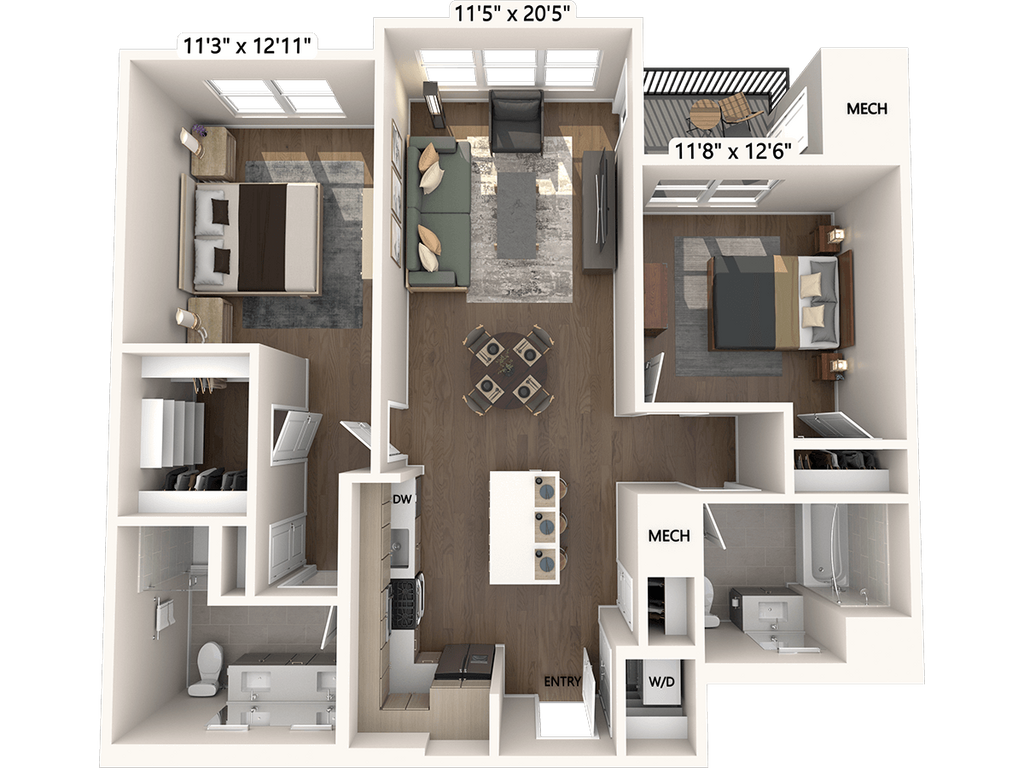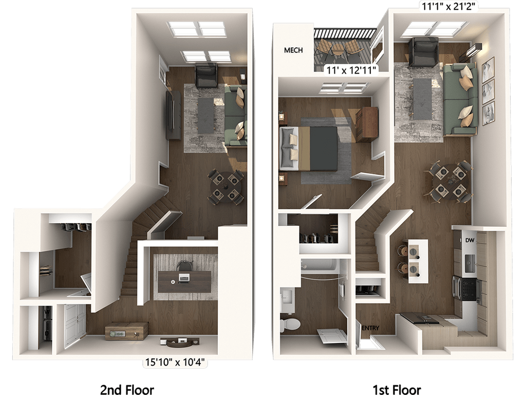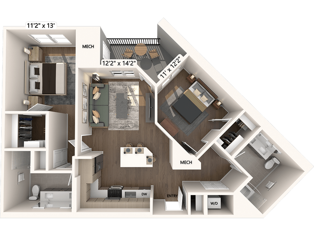 1 Bed, 1.5 Baths, 1194 sq ftAvailable NowLargest 1 BedroomThis is the largest 1 Bedroom at this PropertyModel Gallery