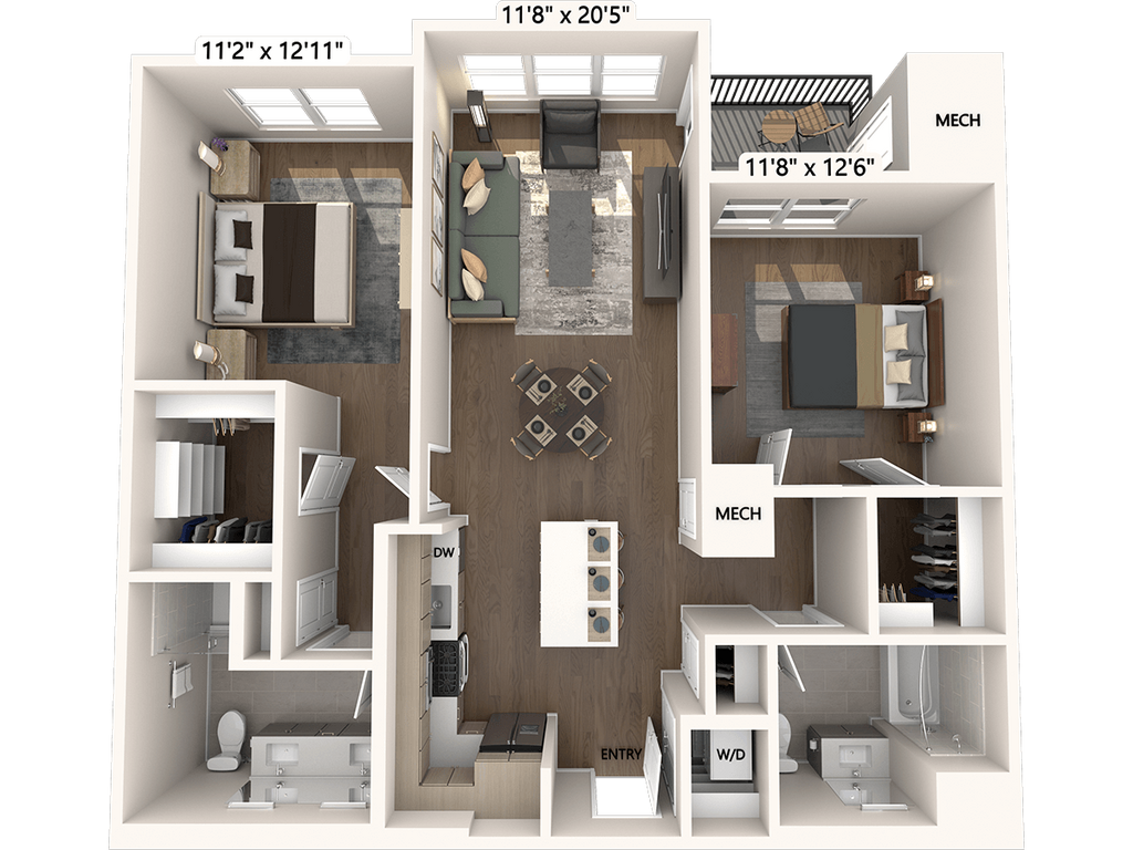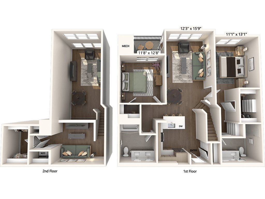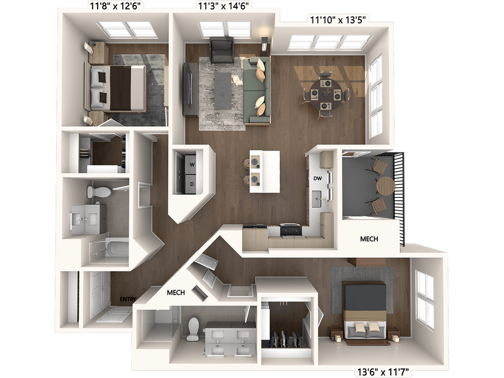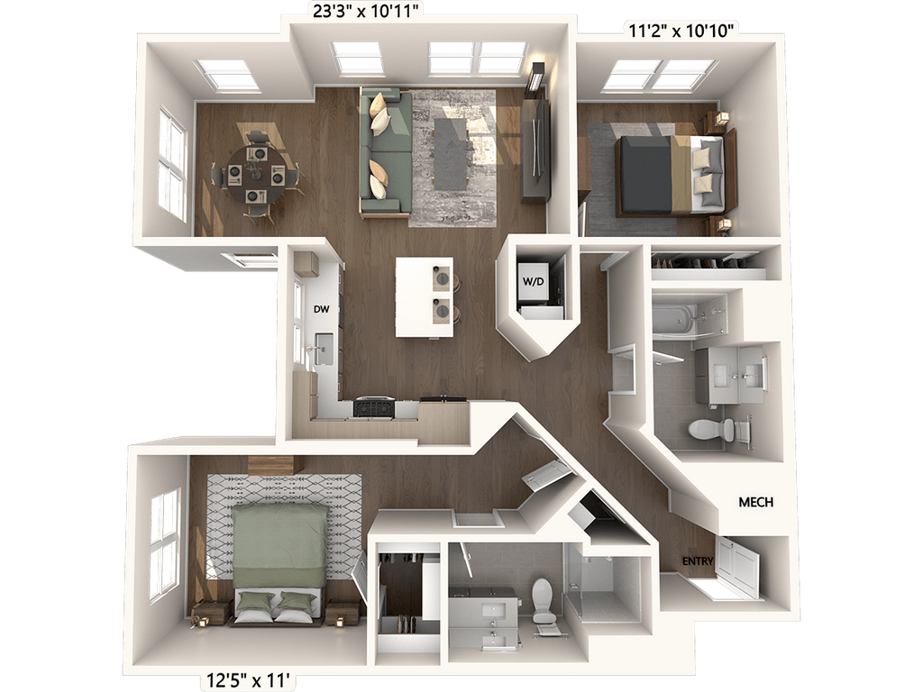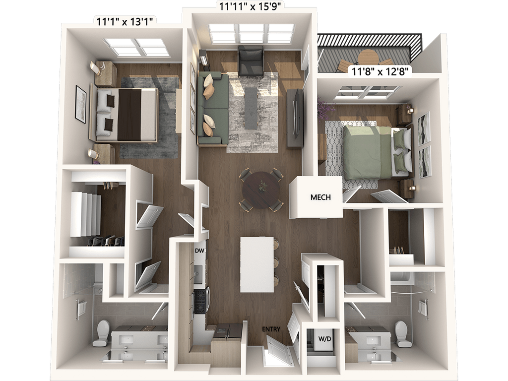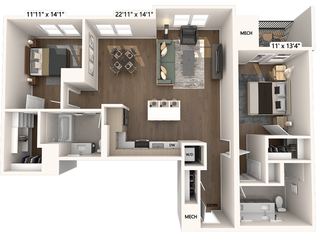 1 Bed, 1.5 Baths, 1194 sq ftAvailable NowLargest 1 BedroomThis is the largest 1 Bedroom at this PropertyModel Gallery