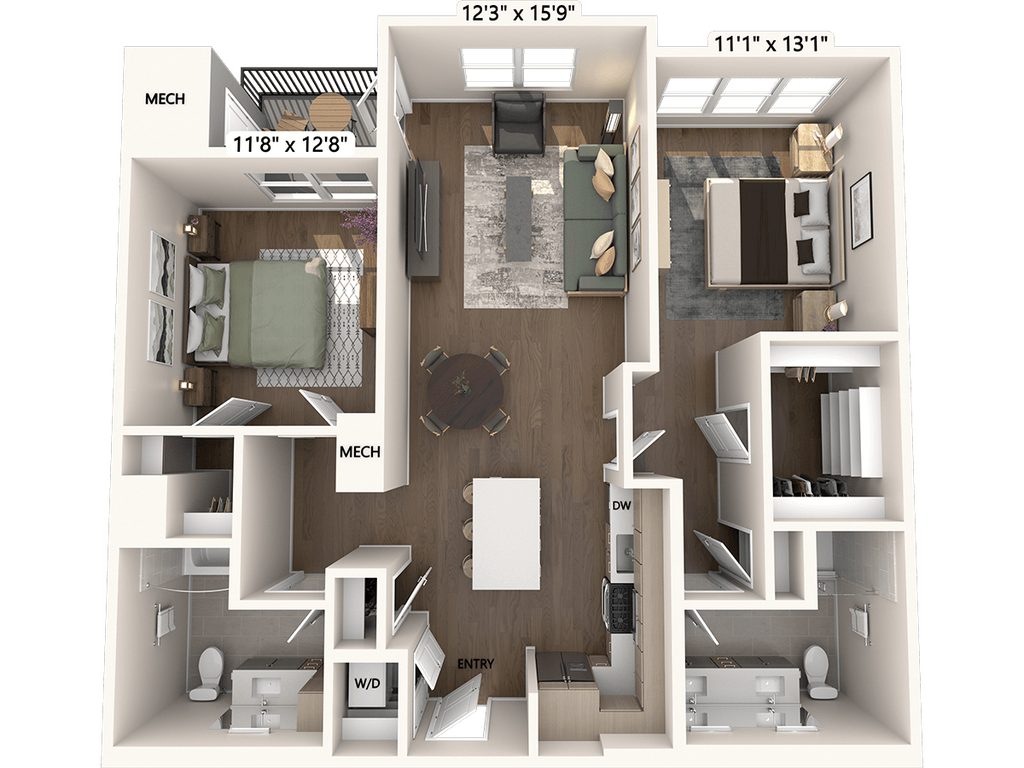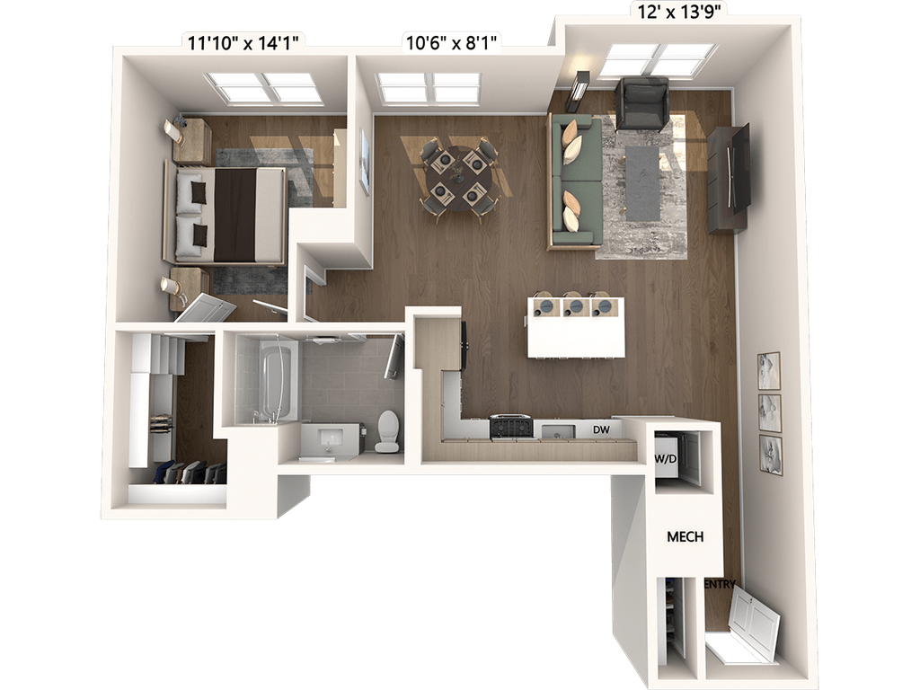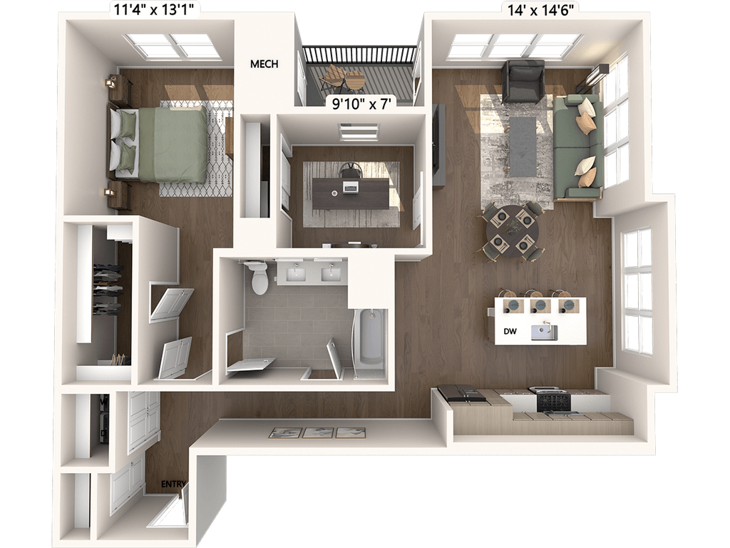 Apartment Model: AM12From $2,8001 Bedroom, 1 Bath, 713 sq ftAvailable January 3, 2026![]()