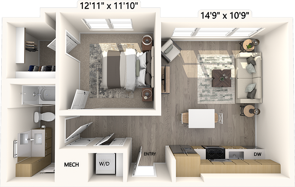 1 Bed, 1 Bath, 667 sq ftTotal Monthly PriceAvailable NowModel Gallery