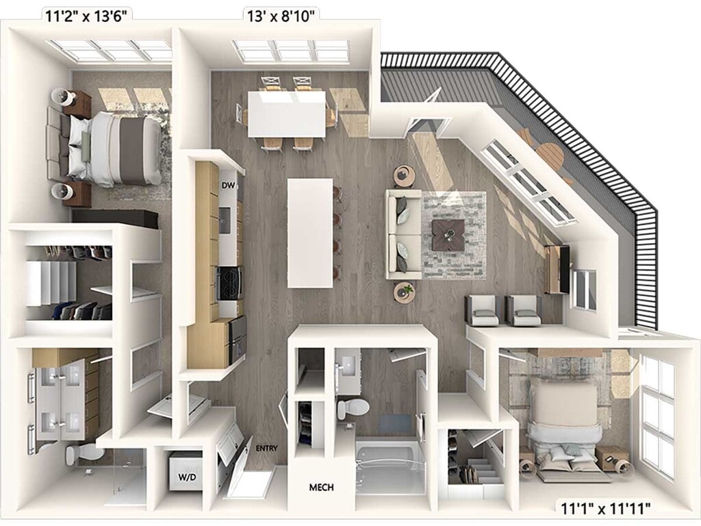Apartment Model: AM08a$1,5501 Bedroom, 1 Bath, 667 sq ftAvailable Now![]()