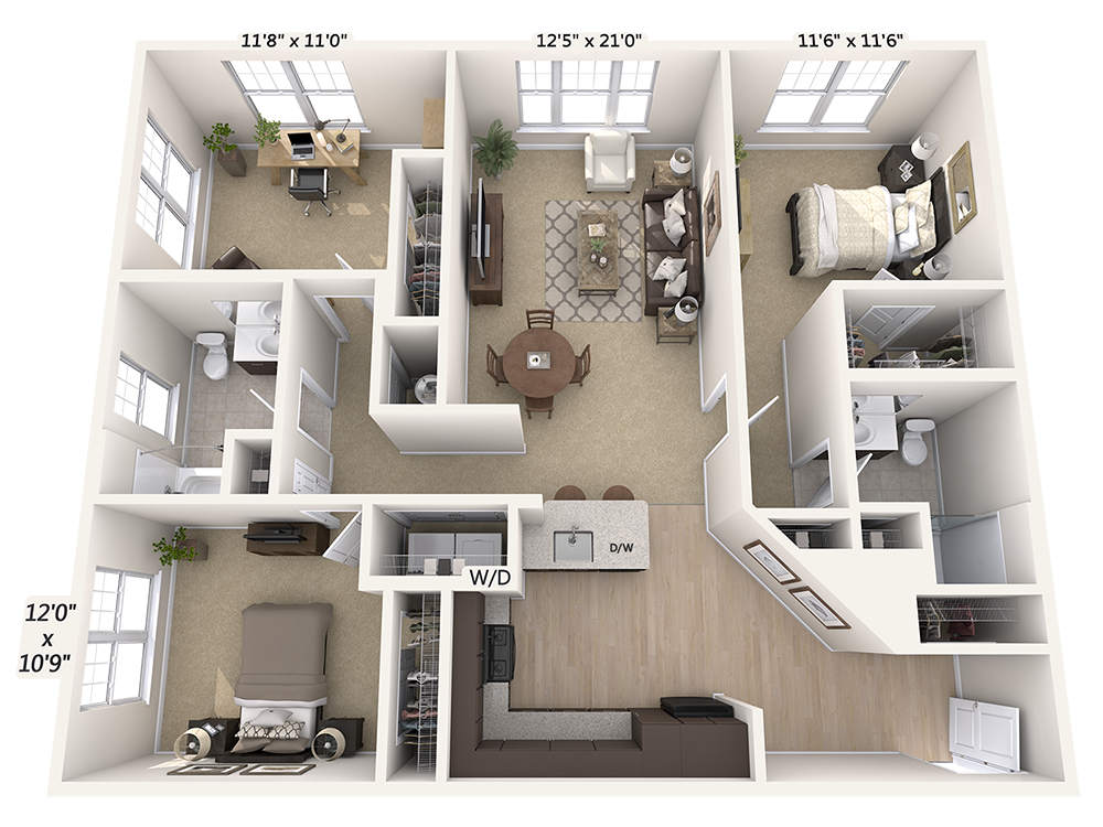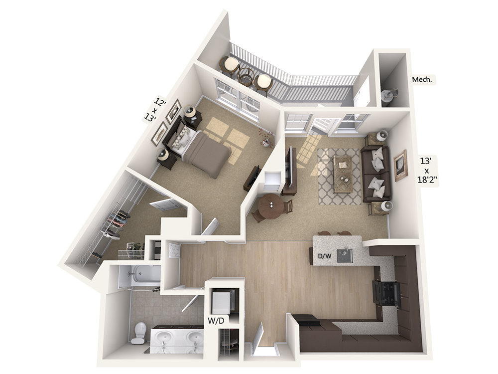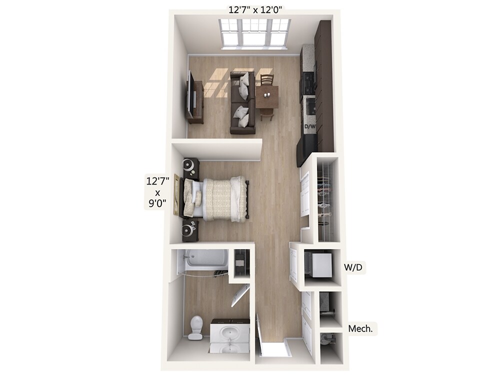 Studio, 1 Bath, 709 sq ftAvailable NowModel Gallery