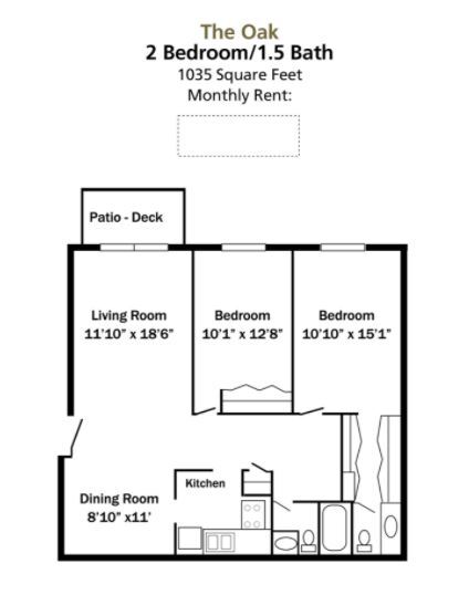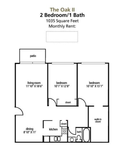 2 Beds, 1.5 Baths, 1035 sq ftAvailable NowLargest 2 BedroomThis is the largest 2 Bedroom at this PropertyModel Gallery