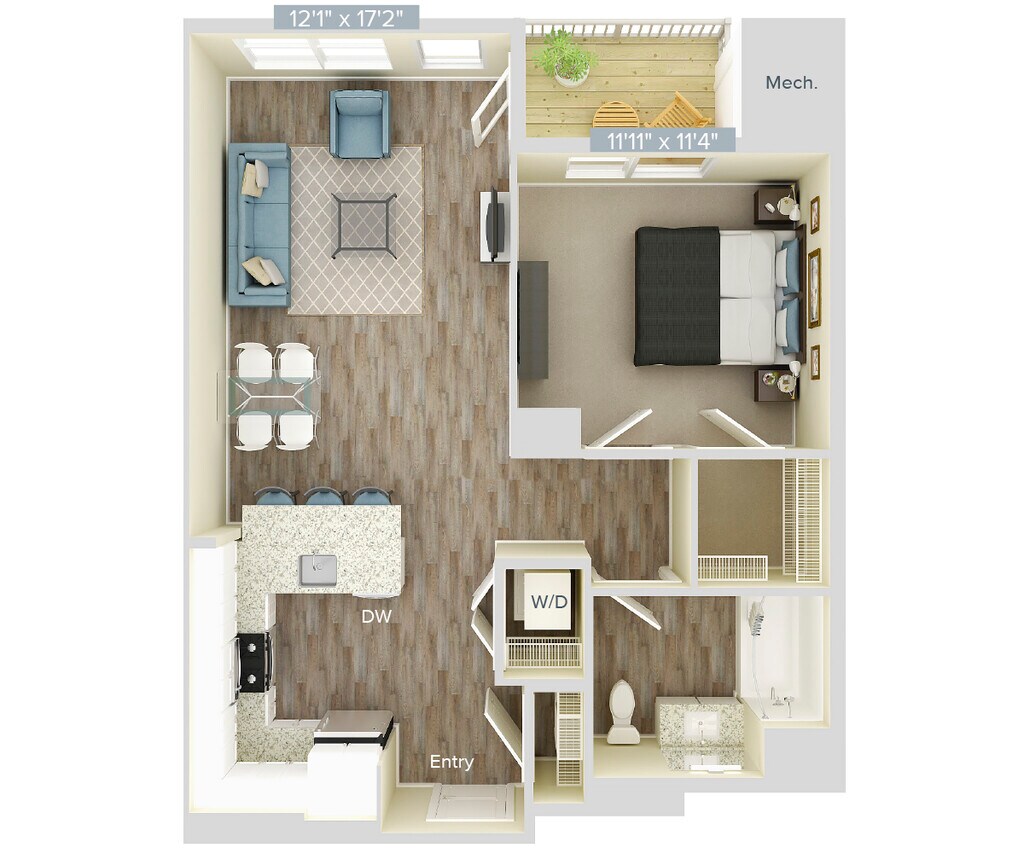 Apartment Model: AM12-724From $2,7901 Bedroom, 1 Bath, 724 sq ftAvailable NowFloor plans are artist's rendering. All dimensions are approximate. Actual product and specifications may vary in dimension or detail. Not all features are available in every rental home. Please see a representative for details.
