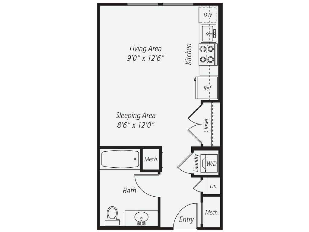 Apartment Model: S1From $2,803Studio, 1 Bath, 451 sq ftAvailable April 30, 2026Floor plans are artist's rendering. All dimensions are approximate. Actual product and specifications may vary in dimension or detail. Not all features are available in every rental home. Please see a representative for details.