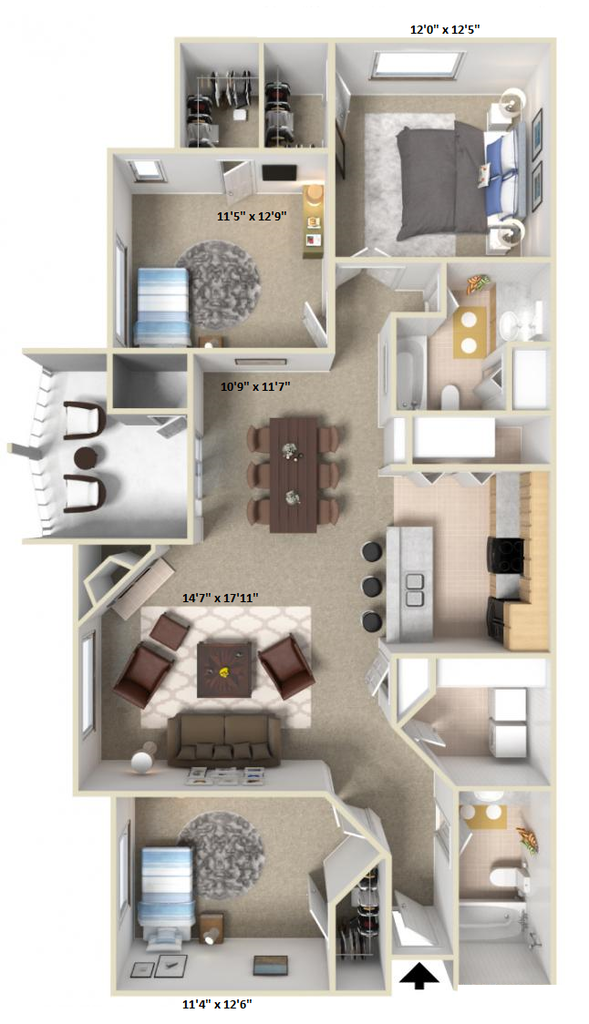 Apartment Model: C2TG$4,0553 Bedroom, 3 Bath, 1661 sq ftAvailable November 23, 2025![]()
