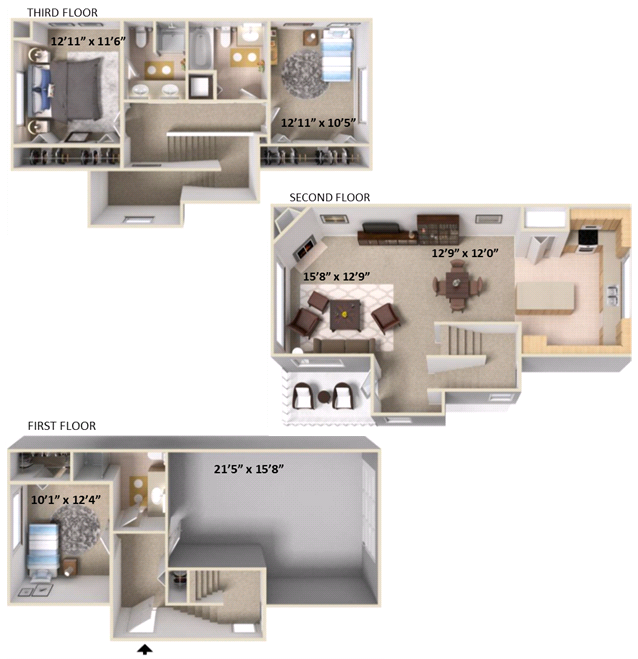 Apartment Model: C1From $3,0003 Bedroom, 2 Bath, 1319 sq ftAvailable Now![]()