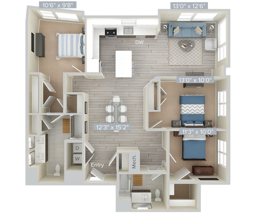 2 Beds, 2 Baths, 1105-1110 sq ftAvailable NowModel Gallery