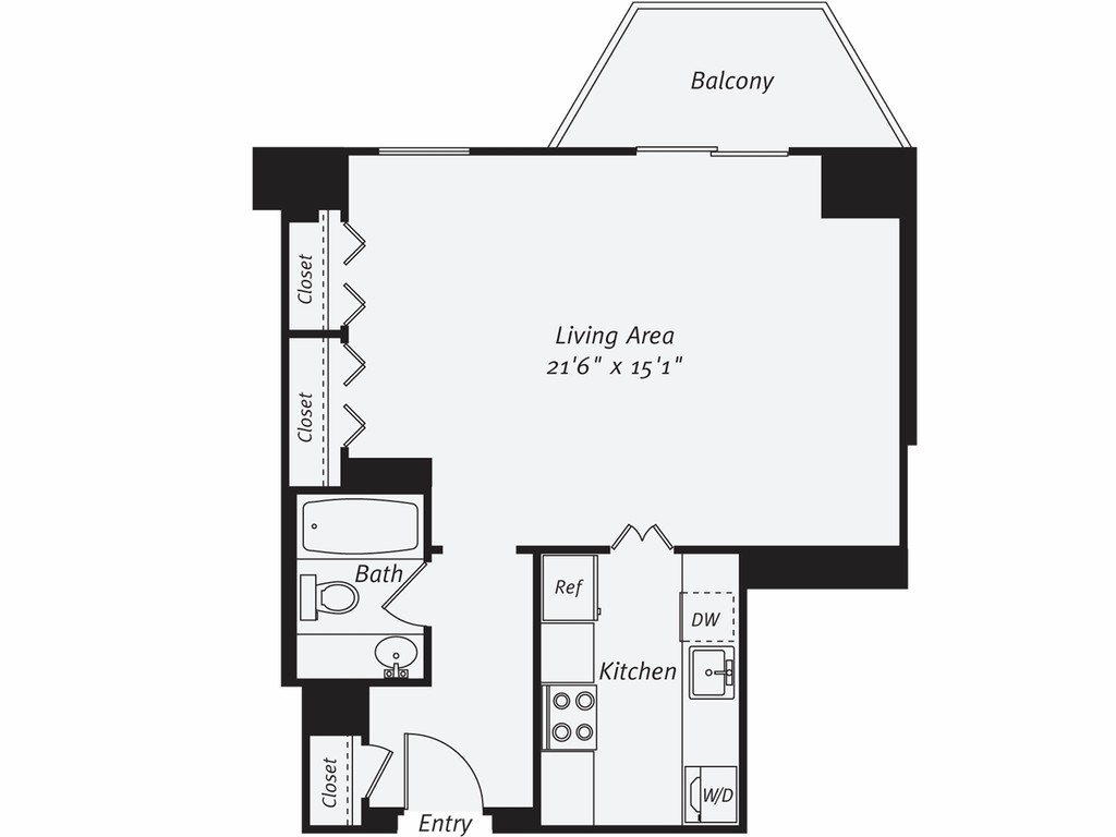 Studio, 1 Bath, 580 sq ftAvailable January 6, 2026Model Gallery