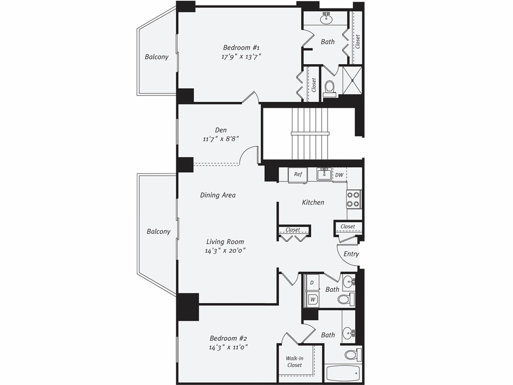 2 Beds, 2.5 Baths, 1340 sq ftAvailable Dec 23Largest 2 BedroomThis is the largest 2 Bedroom at this PropertyModel Gallery