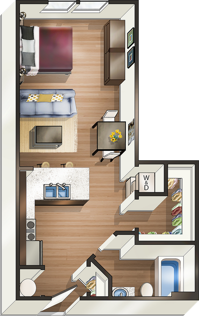 Studio - Floorplan 1 Apartment Unit: 121Apartment Model: Studio$2,299Studio, 1 Bath, 480 sq ftAvailable December 13, 20251 Bedroom