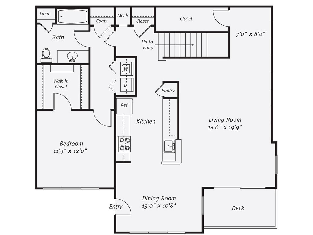 Apartment Model: A1D$2,6801 Bedroom, 1 Bath, 973 sq ftAvailable April 13, 2026Floor plans are artist's rendering. All dimensions are approximate. Actual product and specifications may vary in dimension or detail. Not all features are available in every rental home. Please see a representative for details.