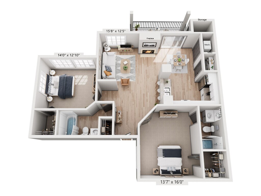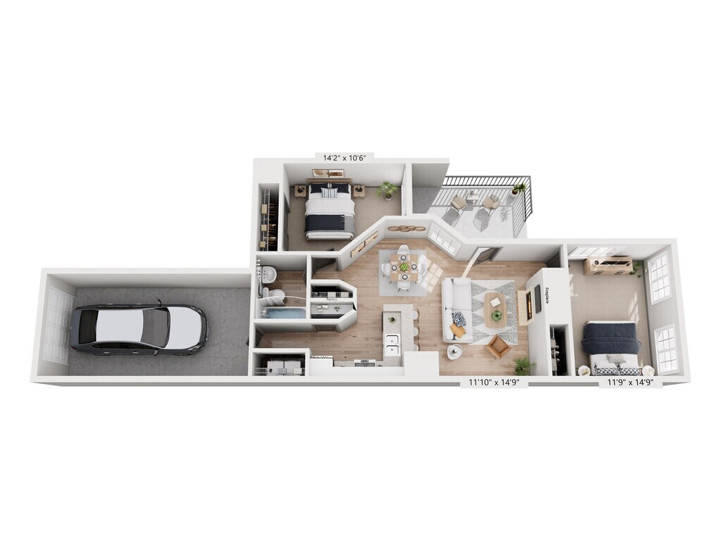 1 Bed, 1 Bath, 1053 sq ftLargest 1 BedroomThis is the largest 1 Bedroom at this PropertyModel Gallery