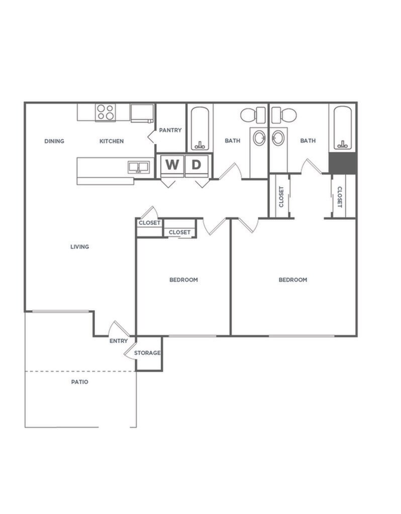 1x1 710 Classic - Floorplan 1 2 Bedrooms