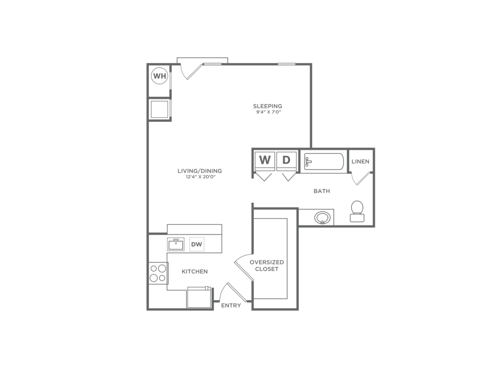 Apartment Model: S1ACall For RatesStudio, 1 Bath, 600 sq ftUnavailableFloor plans are artist's rendering. All dimensions are approximate. Actual product and specifications may vary in dimension or detail. Not all features are available in every rental home. Prices and availability are subject to change. Base rent is based on monthly frequency. Additional fees may apply, such as but not limited to package delivery, trash, water, amenities, etc. Deposits vary. Please see a representative for details.