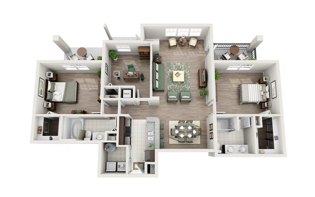 Apartment Model: The CilantroFrom $2,5182 Bedroom, 2 Bath, 1176 sq ftAvailable NowFloor plans are artist's rendering. All dimensions are approximate. Actual product and specifications may vary in dimension or detail. Not all features are available in every rental home. Prices and availability are subject to change. Base rent is based on monthly frequency. Additional fees may apply, such as but not limited to package delivery, trash, water, amenities, etc. Deposits vary. Please see a representative for details.