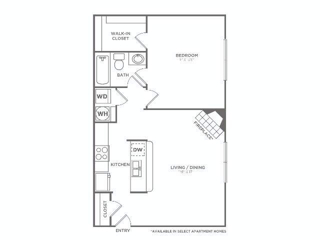 Apartment Model: One Bedroom One Bath (643 SF)From $1,8161 Bedroom, 1 Bath, 643 sq ftAvailable November 24, 2025Floor plans are artist's rendering. All dimensions are approximate. Actual product and specifications may vary in dimension or detail. Not all features are available in every rental home. Prices and availability are subject to change. Base rent is based on monthly frequency. Additional fees may apply, such as but not limited to package delivery, trash, water, amenities, etc. Deposits vary. Please see a representative for details.