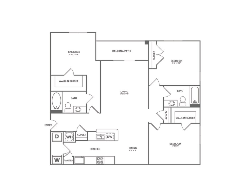 Apartment Model: TriumphFrom $1,5602 Bedroom, 2 Bath, 1100 sq ftAvailable NowFloor plans are artist's rendering. All dimensions are approximate. Actual product and specifications may vary in dimension or detail. Not all features are available in every rental home. Prices and availability are subject to change. Base rent is based on monthly frequency. Additional fees may apply, such as but not limited to package delivery, trash, water, amenities, etc. Deposits vary. Please see a representative for details.