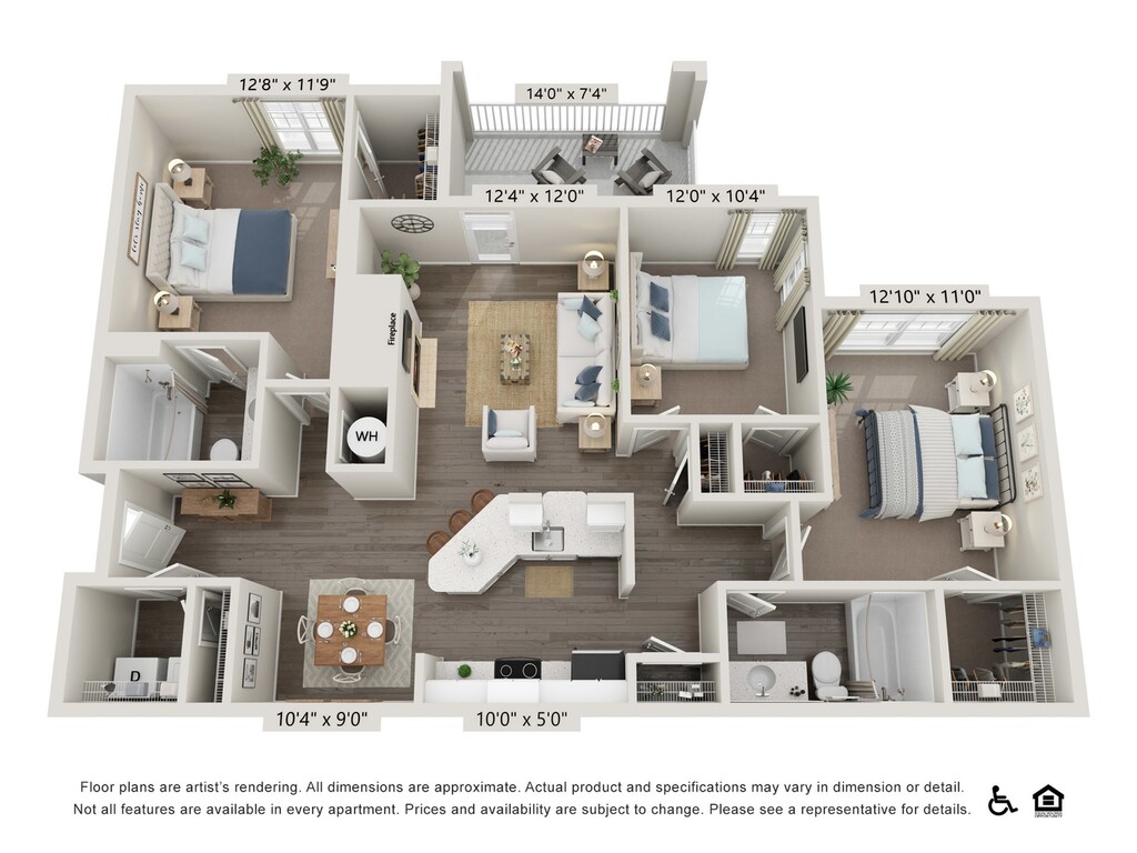 Spruce (875 SF) - Image 8 Floor plans are artist's rendering. All dimensions are approximate. Actual product and specifications may vary in dimension or detail. Not all features are available in every rental home. Prices and availability are subject to change. Base rent is based on monthly frequency. Additional fees may apply, such as but not limited to package delivery, trash, water, amenities, etc. Deposits vary. Please see a representative for details.
