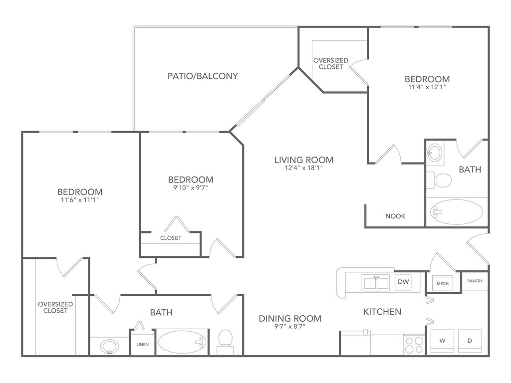 Apartment Model: B1From $2,4012 Bedroom, 2 Bath, 1190 sq ftAvailable NowFloor plans are artist's rendering. All dimensions are approximate. Actual product and specifications may vary in dimension or detail. Not all features are available in every rental home. Please see a representative for details.