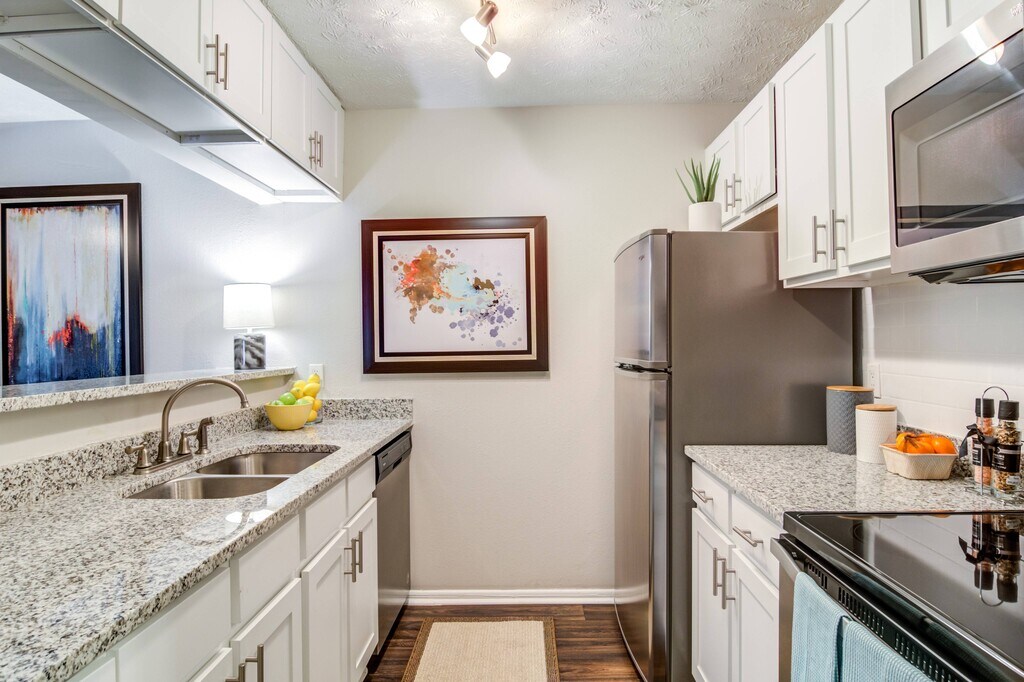 - Renovated kitchens with white shaker cabinets and granite countertops*