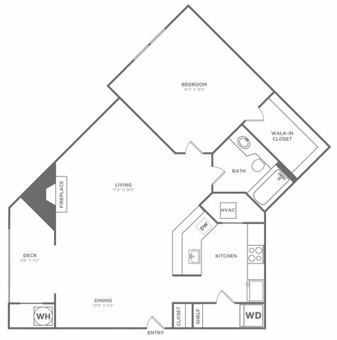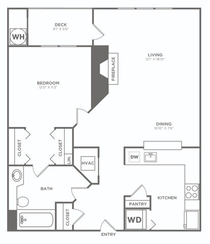 Apartment Model: One Bedroom One Bath (755 SF)From $1,6701 Bedroom, 1 Bath, 755 sq ftAvailable December 19, 2025Floor plans are artist's rendering. All dimensions are approximate. Actual product and specifications may vary in dimension or detail. Not all features are available in every rental home. Prices and availability are subject to change. Base rent is based on monthly frequency. Additional fees may apply, such as but not limited to package delivery, trash, water, amenities, etc. Deposits vary. Please see a representative for details.