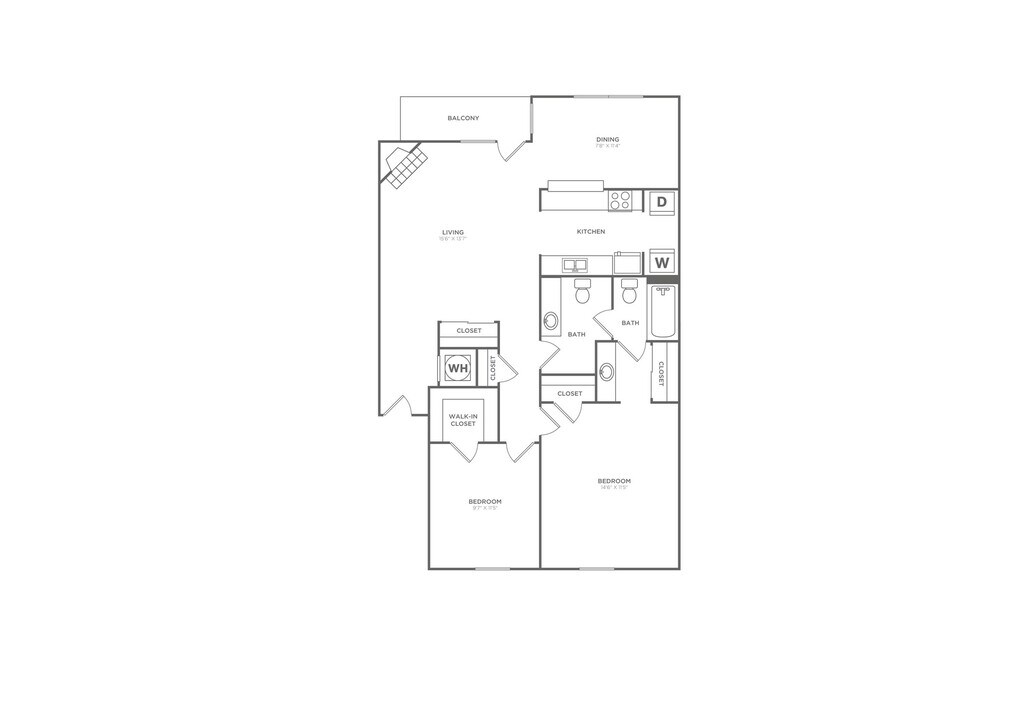 2 Beds, 2 Baths, 1250 sq ftAvailable NowLargest 2 BedroomThis is the largest 2 Bedroom at this PropertyModel Gallery