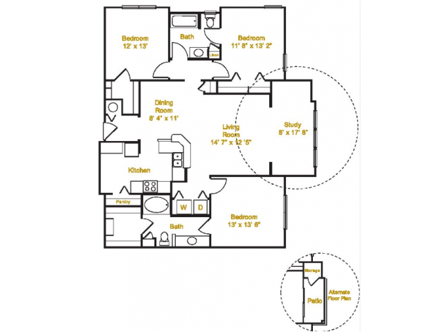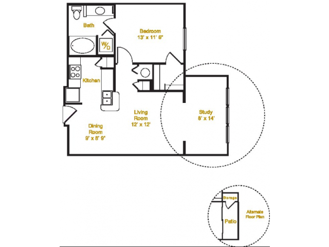 A1 Study - Floorplan 1 Floor plans are artist's rendering. All dimensions are approximate. Actual product and specifications may vary in dimension or detail. Not all features are available in every rental home. Prices and availability are subject to change. Base rent is based on monthly frequency. Additional fees may apply, such as but not limited to package delivery, trash, water, amenities, etc. Deposits vary. Please see a representative for details.