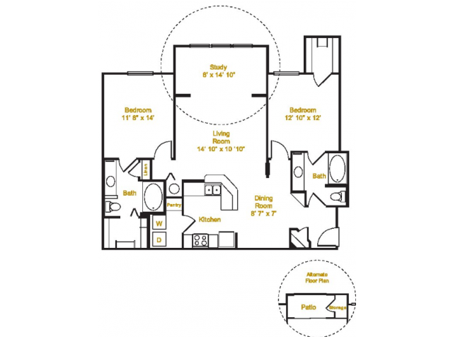 Apartment Model: A2 StudyFrom $1,3401 Bedroom, 1 Bath, 881 sq ftAvailable NowFloor plans are artist's rendering. All dimensions are approximate. Actual product and specifications may vary in dimension or detail. Not all features are available in every rental home. Prices and availability are subject to change. Base rent is based on monthly frequency. Additional fees may apply, such as but not limited to package delivery, trash, water, amenities, etc. Deposits vary. Please see a representative for details.