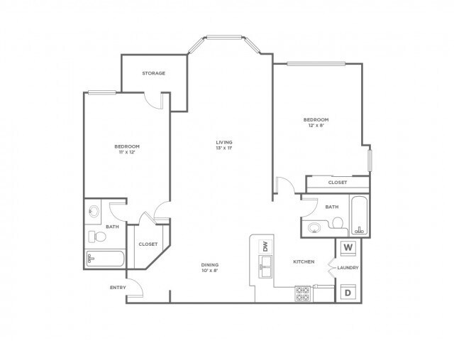 Apartment Model: A2From $3,6321 Bedroom, 1 Bath, 870 sq ftAvailable NowFloor plans are artist's rendering. All dimensions are approximate. Actual product and specifications may vary in dimension or detail. Not all features are available in every rental home. Prices and availability are subject to change. Base rent is based on monthly frequency. Additional fees may apply, such as but not limited to package delivery, trash, water, amenities, etc. Deposits vary. Please see a representative for details.
