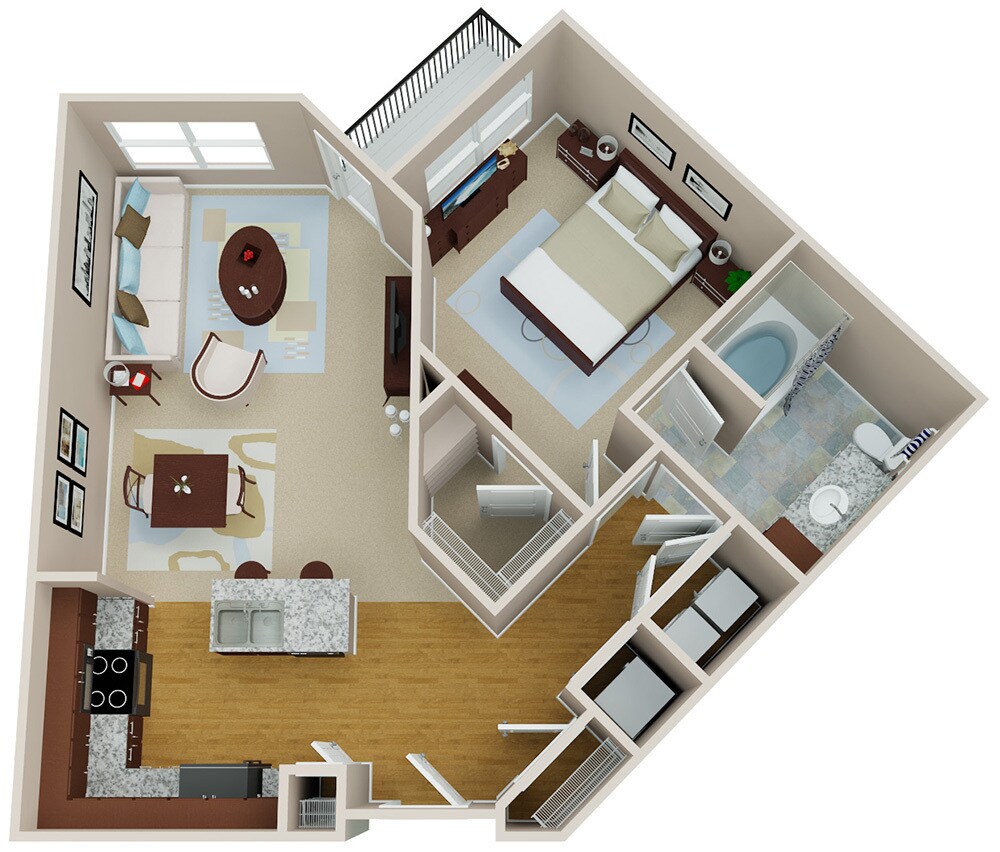 1 Bed, 1 Bath, 843 sq ftModel Gallery