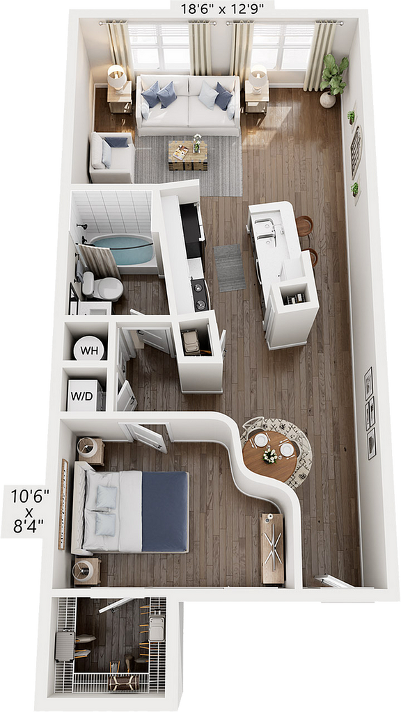 Studio, 1 Bath, 624 sq ftModel Gallery