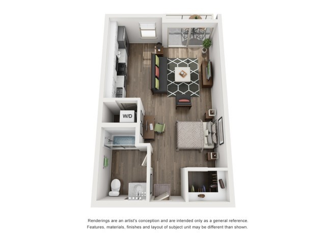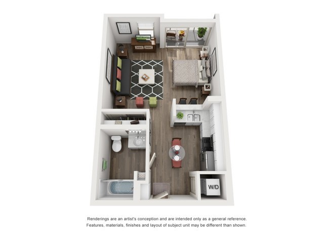 Apartment Model: A1 - Sophisticated$2,140Studio, 1 Bath, 501 sq ftAvailable December 11, 2025Floor plans are artist's rendering. All dimensions are approximate. Actual product and specifications may vary in dimension or detail. Not all features are available in every rental home. Prices and availability are subject to change. Base rent is based on monthly frequency. Additional fees may apply, such as but not limited to package delivery, trash, water, amenities, etc. Deposits vary. Please see a representative for details.