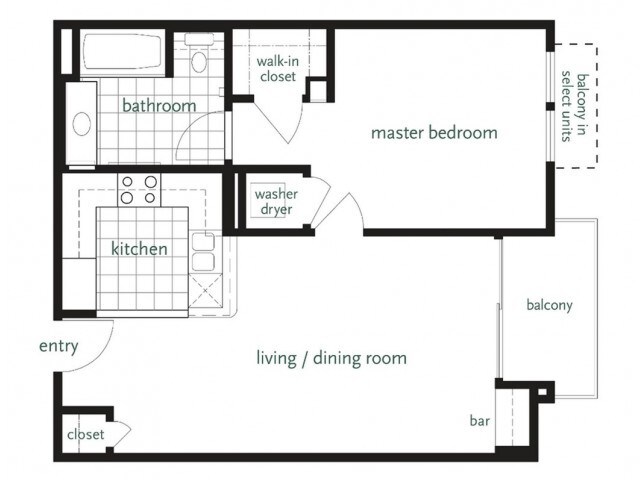 A3 - Sophisticated - Floorplan 1 1 Bedroom