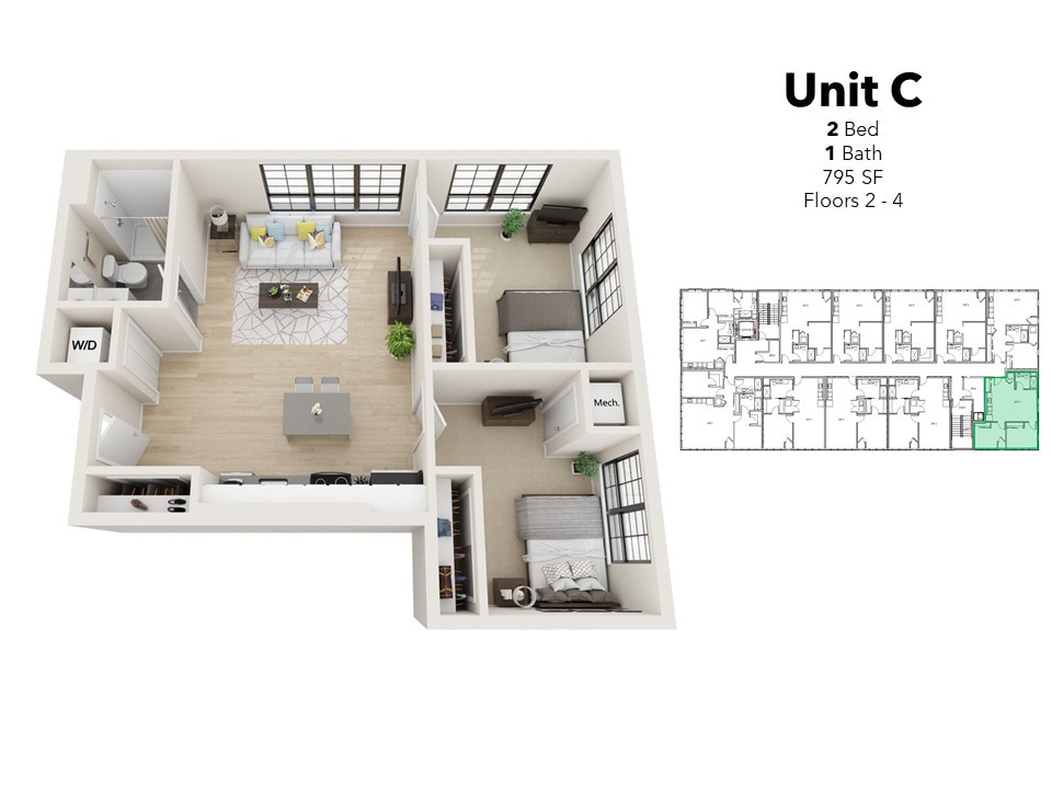 Apartment Model: CFrom $1,6002 Bedroom, 1 Bath, 795 sq ftAvailable NowC - Floorplan 1 Apartment Unit: 210Apartment Model: C$1,6002 Bedroom, 1 Bath, 795 sq ftAvailable NowFurnished 2B/1B