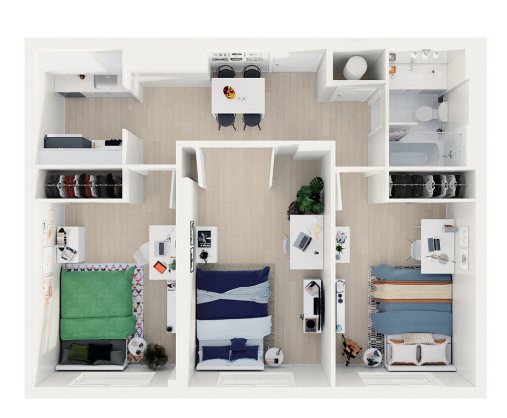 Apartment Model: Three Bedroom3 Bedroom, 1 Bath, 713 sq ftAvailable Now![]()