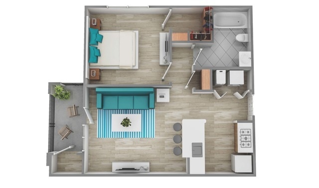 One Bedroom One Bath (579 SF) - Image 3 ![]()