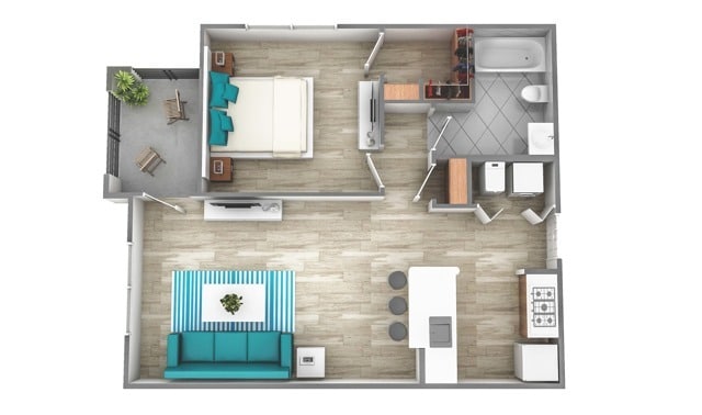Apartment Model: One Bedroom One Bath (633 SF)From $1,2141 Bedroom, 1 Bath, 633 sq ftAvailable NowFloor plans are artist's rendering. All dimensions are approximate. Actual product and specifications may vary in dimension or detail. Not all features are available in every rental home. Prices and availability are subject to change. Base rent is based on monthly frequency. Additional fees may apply, such as but not limited to package delivery, trash, water, amenities, etc. Deposits vary. Please see a representative for details.