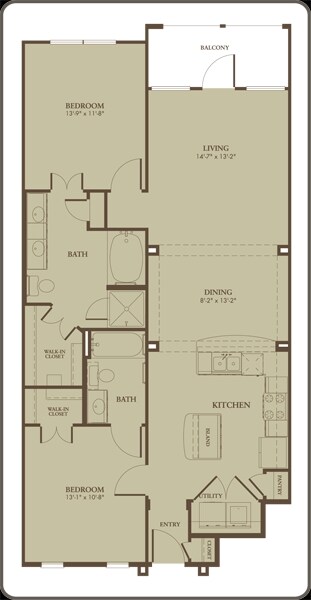 2 Beds, 2 Baths, 1406 sq ftLargest 2 BedroomThis is the largest 2 Bedroom at this PropertyModel Gallery