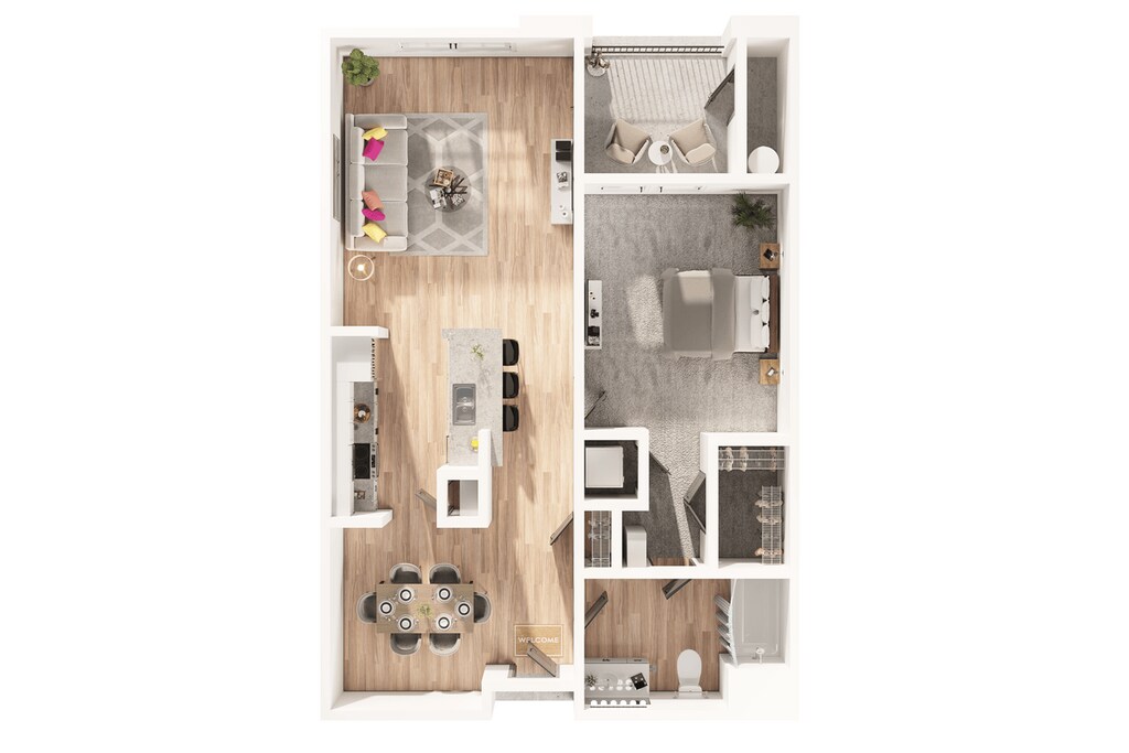 1 Bed, 1 Bath, 753 sq ftPlus FeesAvailable NowModel Gallery
