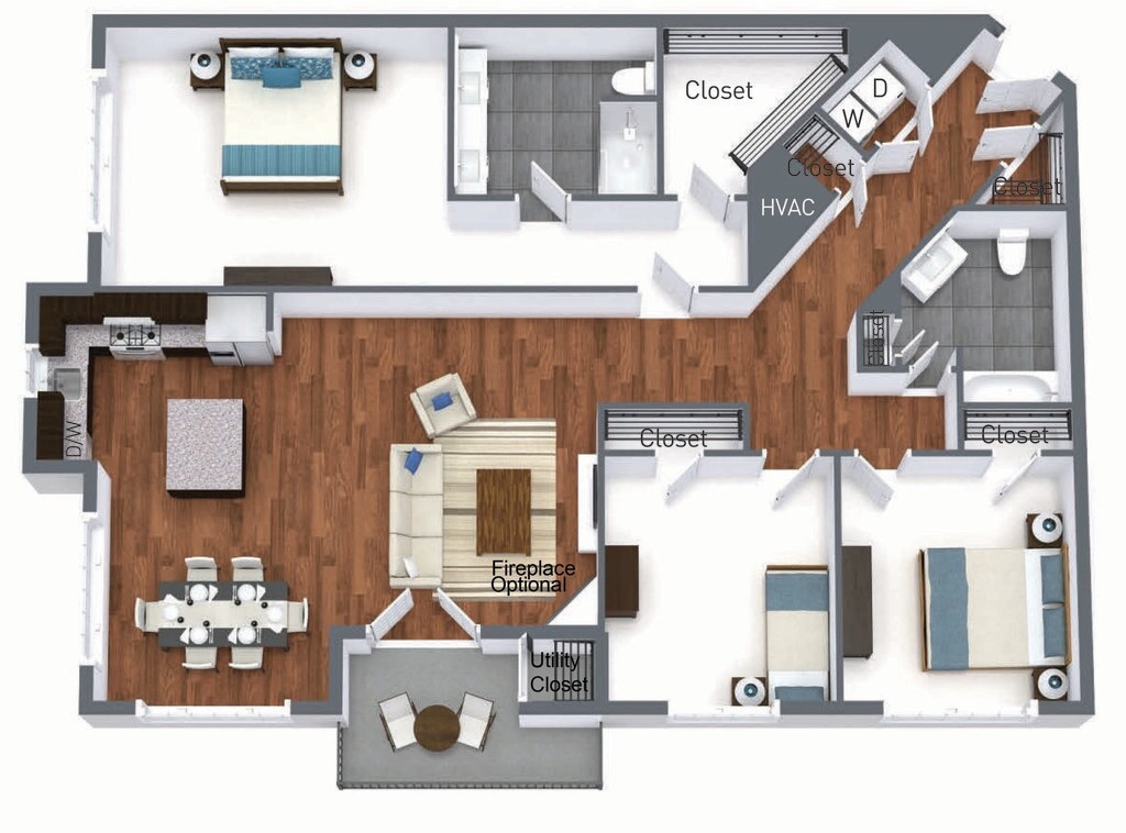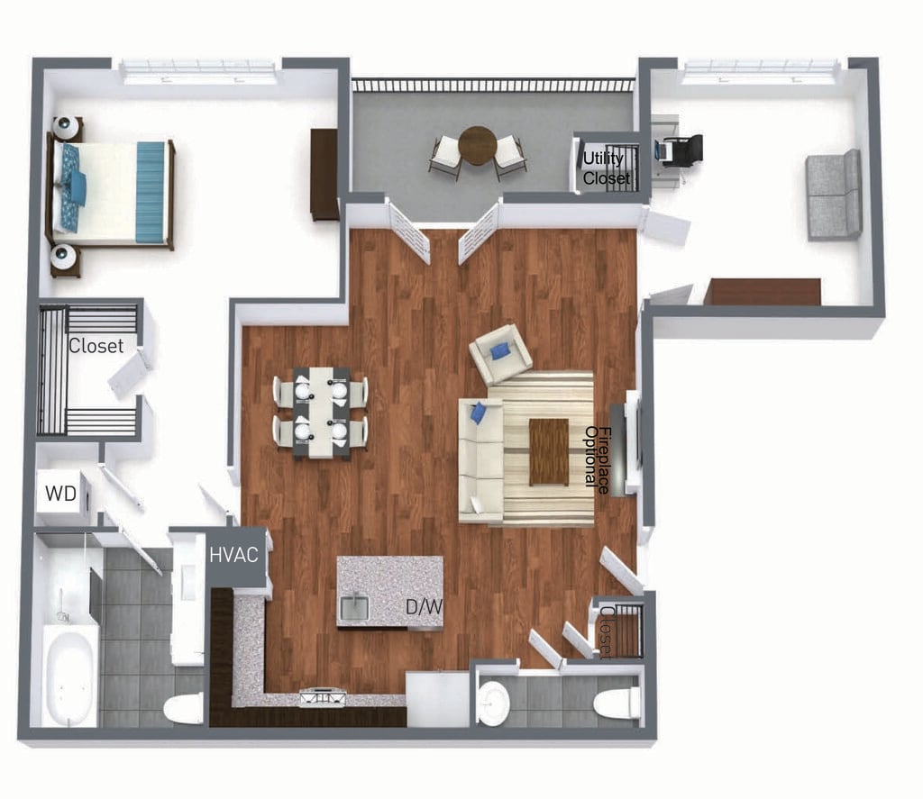 - Unique 1 bedroom apartments featuring 1.5 baths