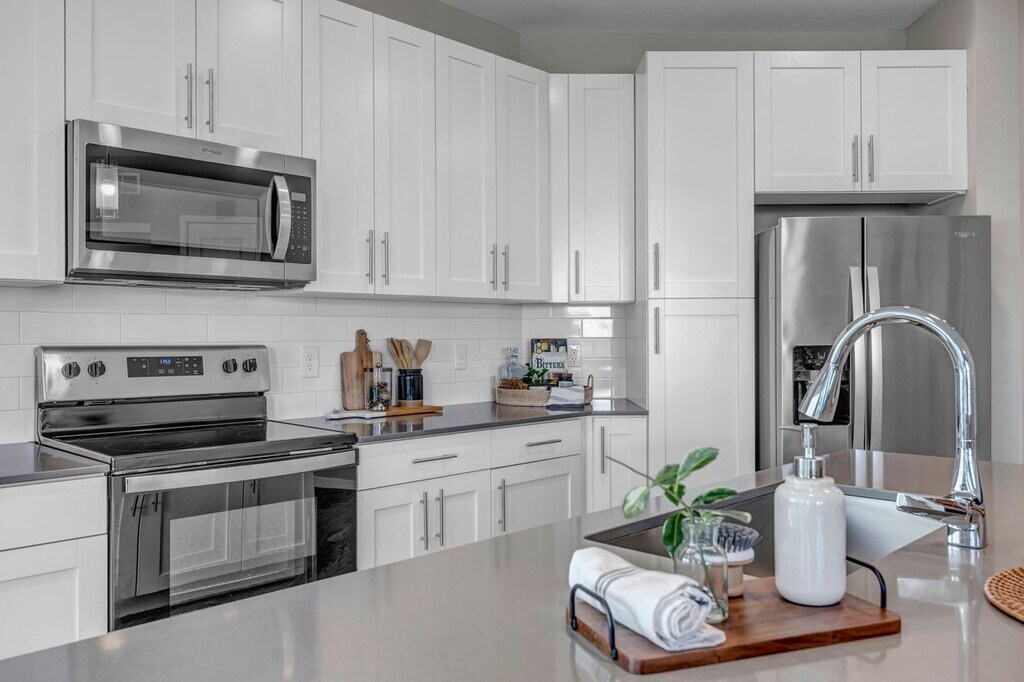 - Quartz Kitchen Countertops with Sleek Tile Backsplash