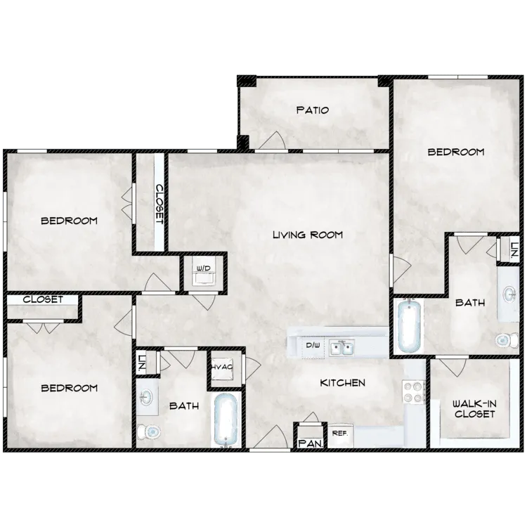 Apartment Model: 3x2 60%3 Bedroom, 2 Bath, 1201 sq ftAvailable Now![]()