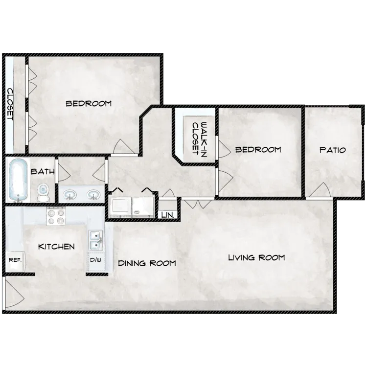 2 Beds, 1 Bath, 779-831 sq ftAvailable NowModel Gallery
